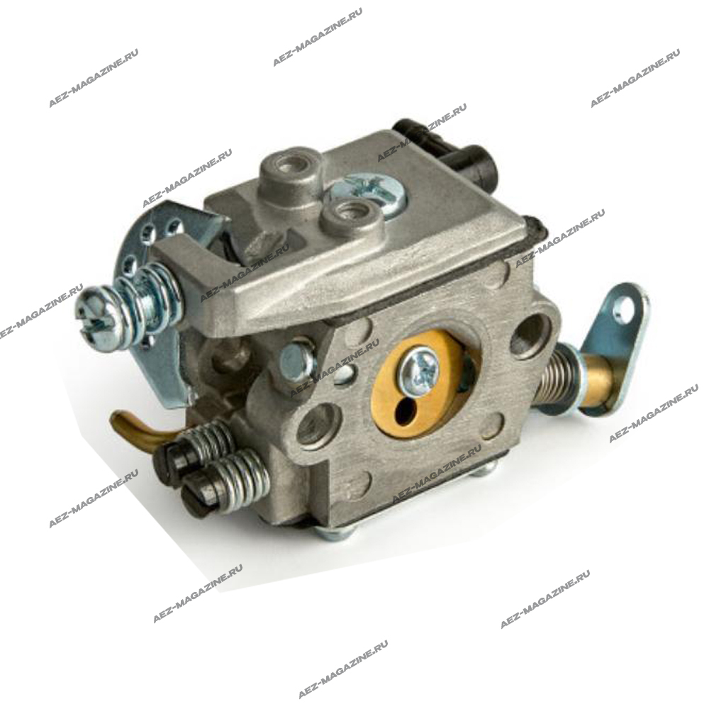 Карбюратор – это устройство, предназначенное для смешивания топлива и воздуха в оптимальной пропорции для обеспечения сгорания в двигателе внутреннего сгорания. В карбюраторе топливо из топливного бака подается в камеру сгорания через жиклеры, где оно распыляется и смешивается с воздухом, поступающим через воздушный фильтр. Смесь топлива и воздуха регулируется дроссельной заслонкой, которая управляется рычагом газа. При открытии дроссельной заслонки большее количество топливно-воздушной смеси поступает в цилиндр двигателя, что приводит к увеличению мощности. Карбюратор также оснащен системой холостого хода, которая обеспечивает работу двигателя на низких оборотах, когда дроссельная заслонка закрыта. Система холостого хода состоит из жиклера холостого хода и регулировочного винта, который позволяет регулировать количество топлива, поступающего в двигатель на холостом ходу.