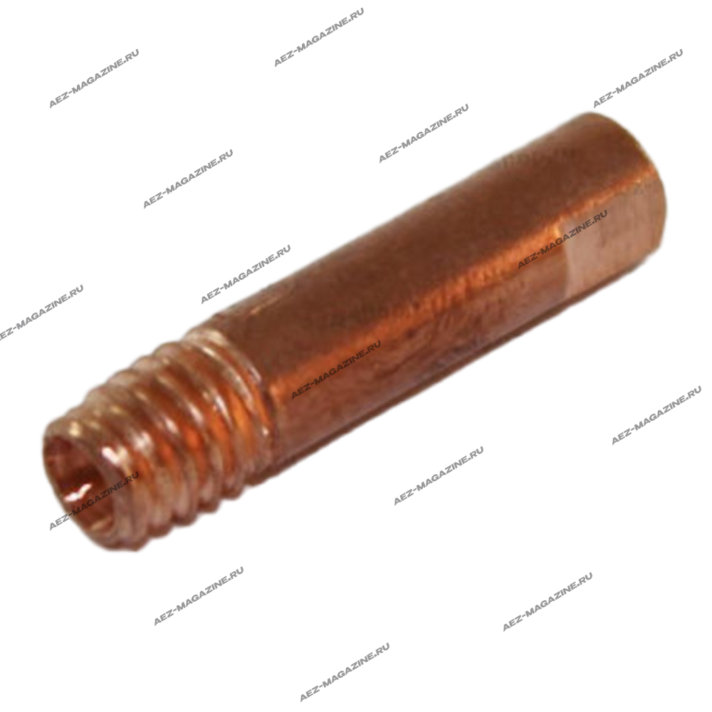Материал: Медный сплав. Резьба: М6. Длина: 25 мм. Диаметр отверстия: 1,0 мм. Шаг резьбы: 1 мм. Рабочая температура: до 400°C. Ток сварки: до 250 А (в зависимости от режима сварки и используемой проволоки).