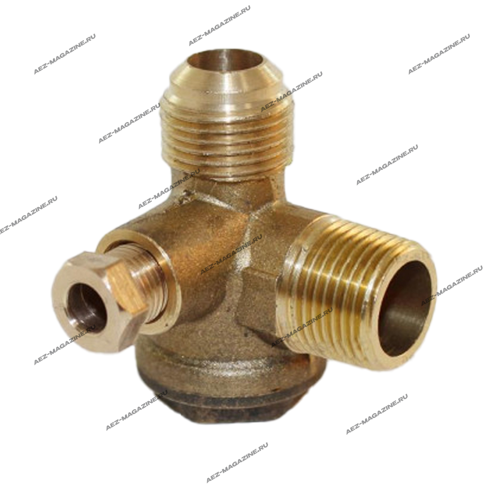 Обратный клапан компрессора, резьбы 3/8 наружная х 3/8 наружная х 1/8 наружная