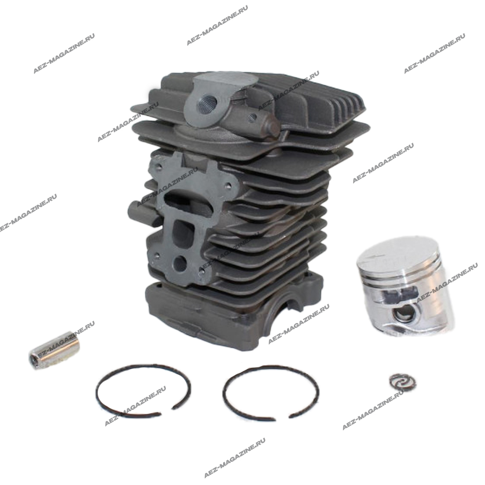В комплекте: Цилиндр - 1шт, поршень D-38мм - 1шт, поршневой палец - 1шт, поршневые кольца - 2шт, стопорные кольца - 2шт