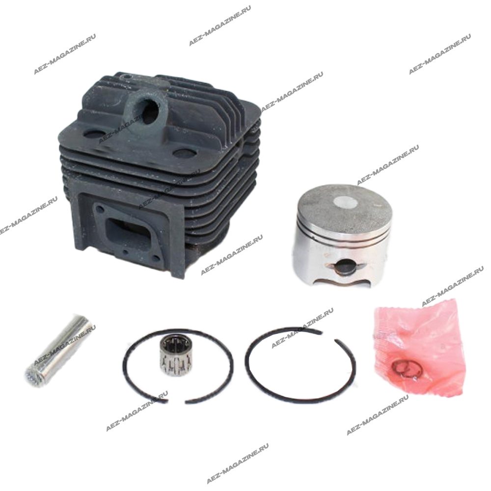 В комплекте цилиндр габаритами 94x94x83 (расстояние между центрами посадочных отверстий 50x47мм), поршень D-47,5мм высотой 40мм, 2 кольца D-49,4x46мм, толщина 1,15мм, палец D-11мм длиной 40мм, 2 стопорных кольца, 1 игольчатый подшипник коленвала