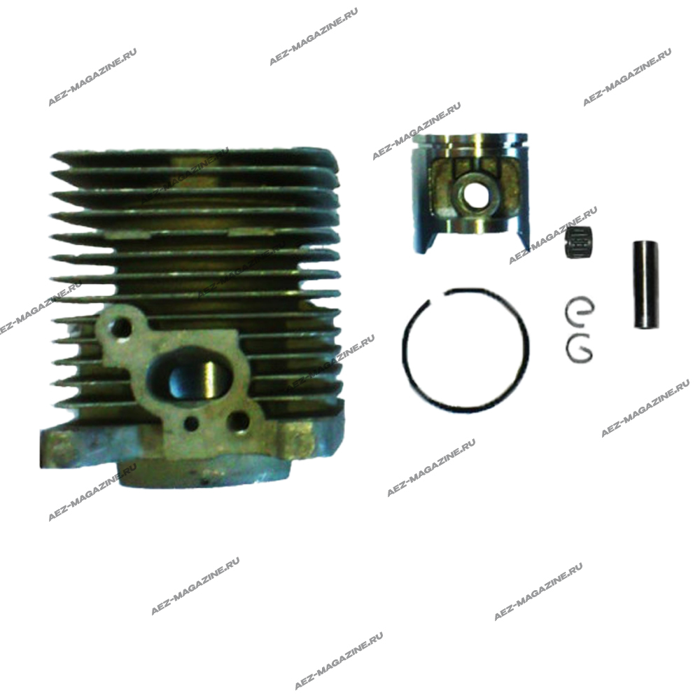 В комплекте: цилиндр - 1шт, поршень - 1шт, поршневое кольцо - 1шт, стопорные кольца - 2шт, палец - 1шт, сепаратор - 1шт