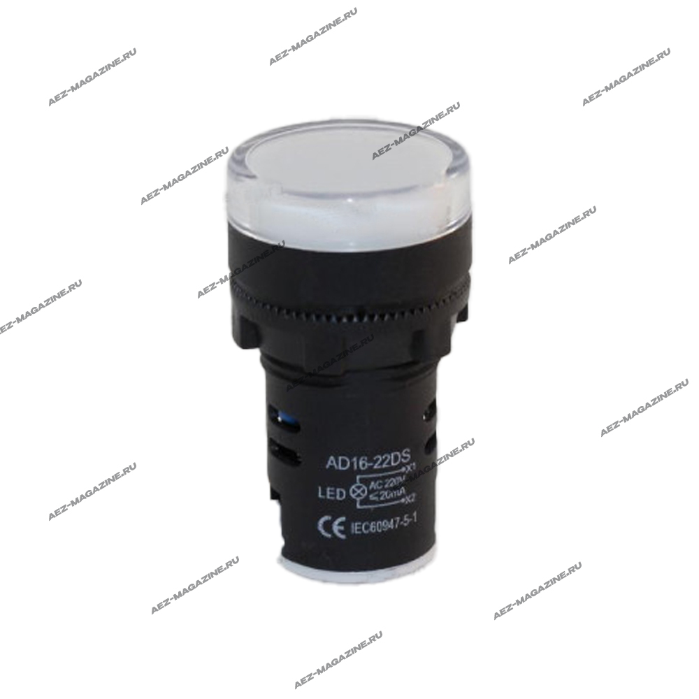 Арматура индикаторная, сигнальная лампа, светодиодная AD16-22ds 250V, белая. Габариты: Диаметры 28х20мм, общая длина 51мм